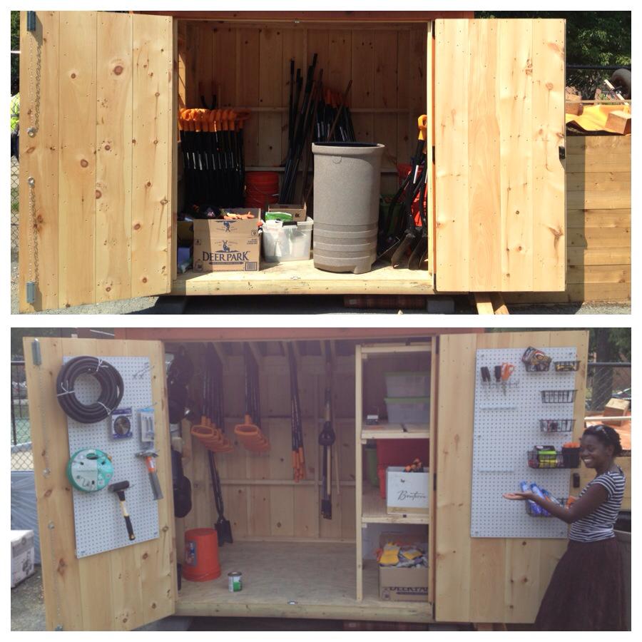 Amy, Jessica, Christina, Sarah, Kamilla, and Bernice B of the SW Gardens team invested leftover Home Depot funds and spent the morning of Saturday Aug 24th giving the tool shed a makeover.